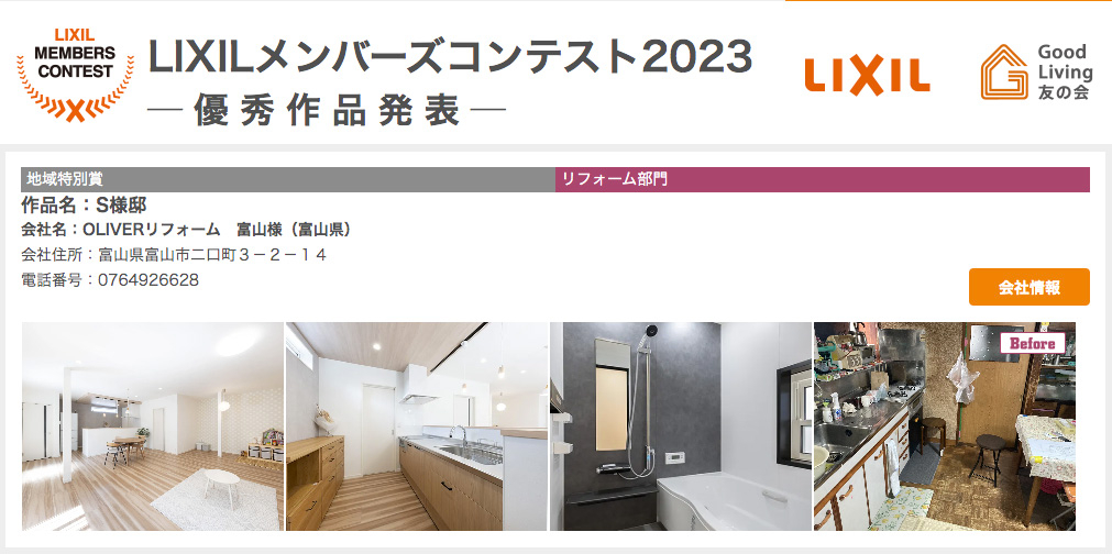 この度、LIXILメンバーズコンテスト2023にて リフォーム部門 地域特別賞を受賞しました!