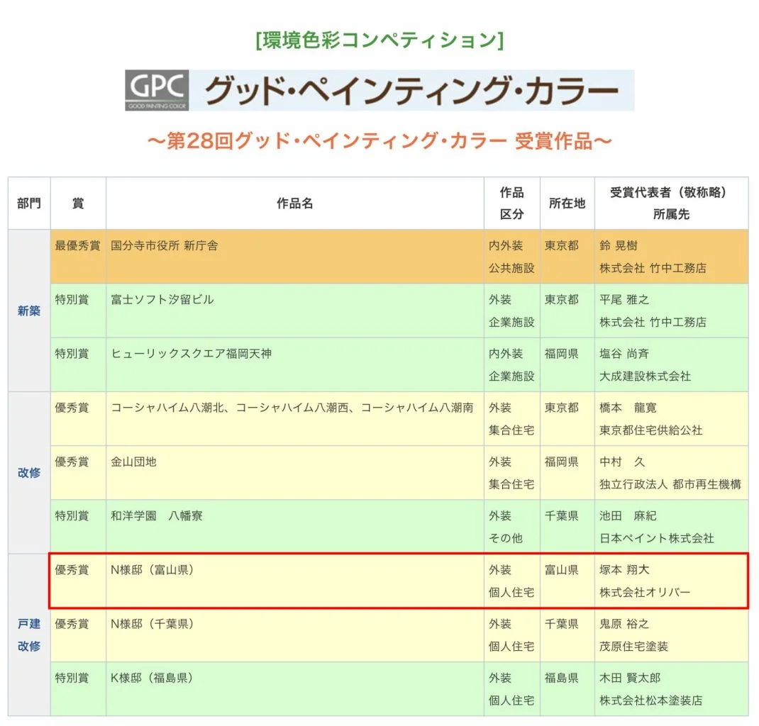 この度、第28回グッド・ペインティング・カラーにて 戸建改修部門 優秀賞を受賞しました!