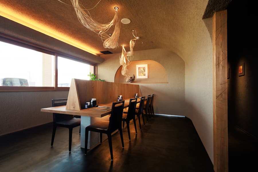 空間デザインは、江戸時代から続く金沢の茶陶・大樋窯の11代大樋長左衛門先生が監修しました。重厚感のあるしつらえと、大樋長左衛門先生による大樋焼の器、流れるJAZZの空間に浸り、ゆったりとした時間をお過ごしにいらしてください。